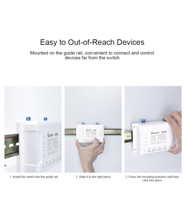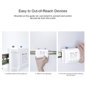 - DIN rail can connect devices away from the switch, and devices can be voice-activated with Alexa and Google Home smart assistant.