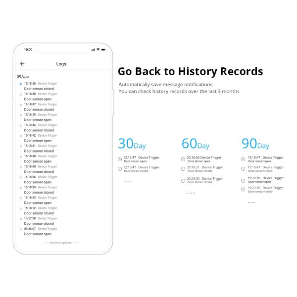 - Low-Battery Reminder & History Records Check: Get notified on the App when the battery is low and access the 3-month history records automatically saved.