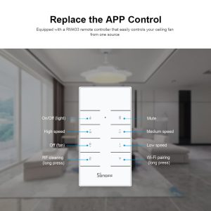 – APP & 433MHz RF Remote Control: Use the eWeLink App on your iOS or Android smartphone to control the ceiling fan with lights remotely from anywhere, or use the RM433 remote controller (included in the package). The small 433MHz remote controller design allows it to be hung on the wall as a wireless wall switch or removed as a remote control.