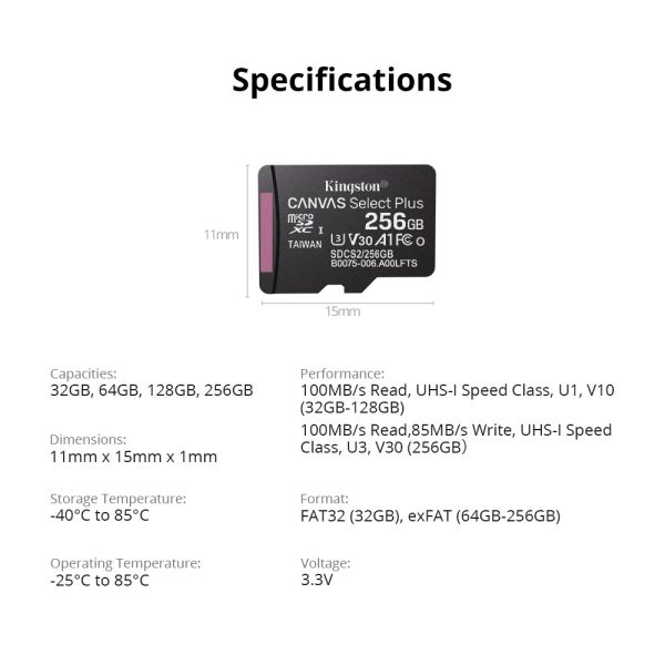- Multiple capacities: Available in capacities of up to 256GB, providing ample space for storing videos and files.