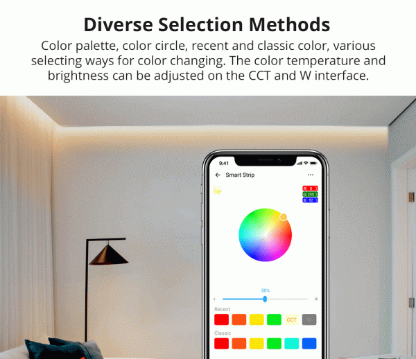 - No need to worry about the network anymore, only by Bluetooth connection, you can control your light strips with SONOFF L2 Lite Smart LED Light Strip-5M/16.4Ft