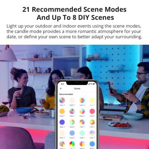 - Light up your outdoor and indoor events using the 21 scene modes, the candle mode provides a more romantic atmosphere for your date, or define your own scene to better adapt your surrounding