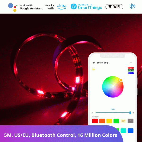 - Supports voice control with both Hey Google and Alexa to change color, brightness, and temperature