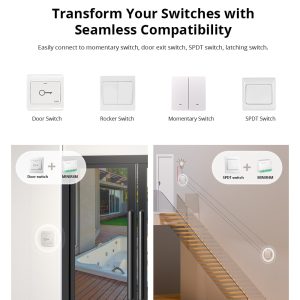External Switch Control: This smart switch can be easily connected to different types of switches, such as momentary switches, door exit switches, SPDT switches, and latching switches. It offers reliable control options for different scenarios and setups.