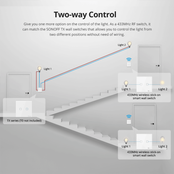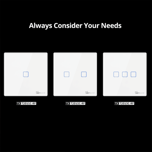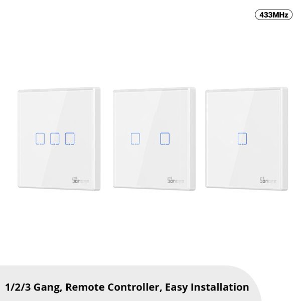 - The SONOFF T2EU-RF is a 433MHz wireless stick-on smart wall switch that is designed to look modern and artistic, similar to the best-selling TX series Wi-Fi Wall Smart Switch by SONOFF.