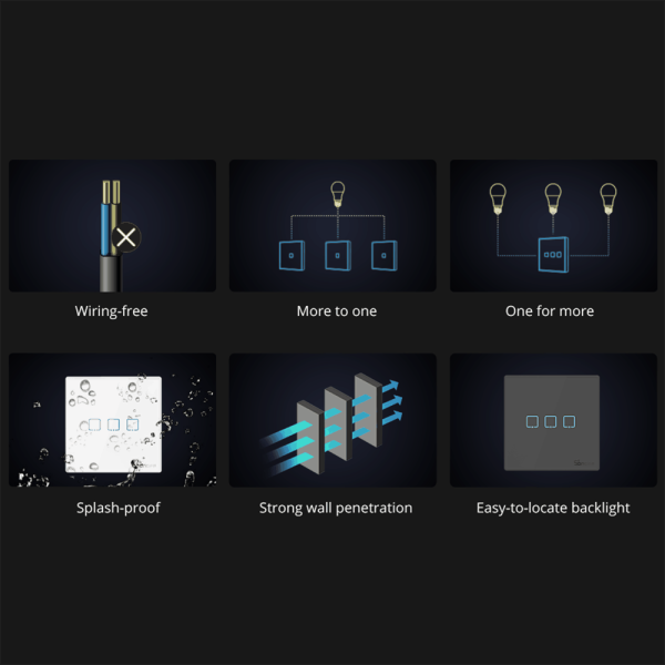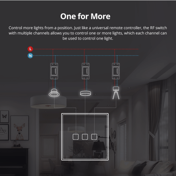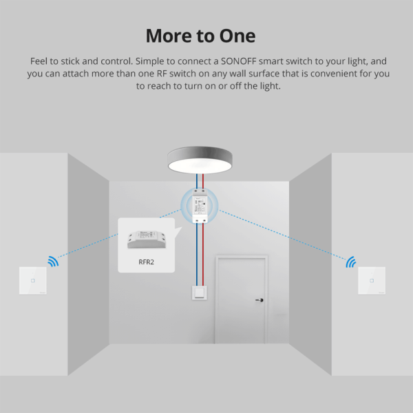 - In addition to its compatibility with SONOFF T1/T2/T3 wall switch, it can also be used with SONOFF RFR2, 4CHPROR3 and SlampherR2 to provide you with another control option aside from app remote control and voice control.