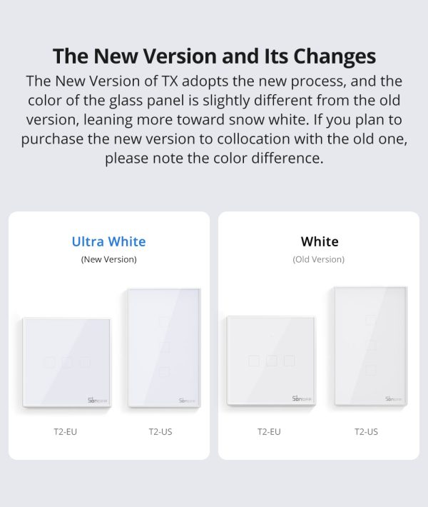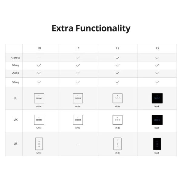 - The WiFi smart switches with 1-3 gangs are divided into T0, T1, T2 and T3.