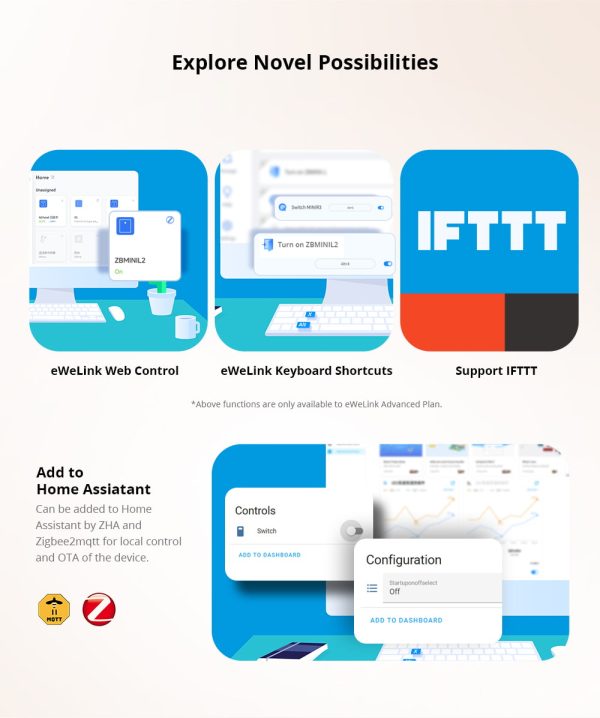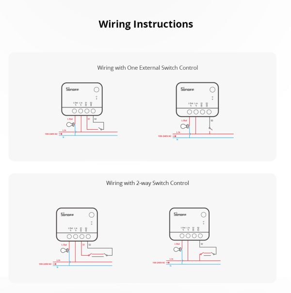 - External Switch Control: Supports external switches like rocker light switches and push-button wall switches. The ZBMINIL2 offers flexibility in control without the need for a neutral wire.
