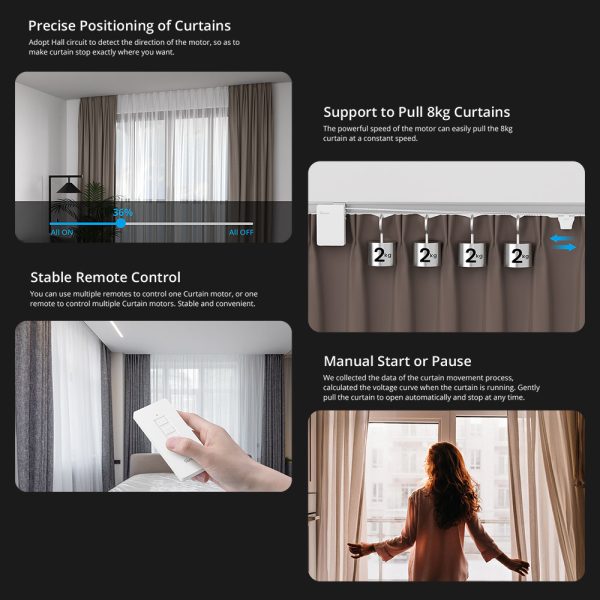 Easy to Make Ordinary Curtain Smart Instantly upgrade your existing curtains to smart curtains without making changes to your current setup or using any tools. The powerful motor speed effortlessly pulls curtains weighing up to 8kg at a consistent pace.