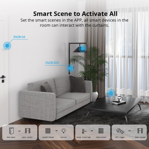 Multiple Control Options Use the eWeLink App to control your curtains, schedule times, create smart scenes, or use the remote control for easy management. Supports voice control for flexibility and convenience.