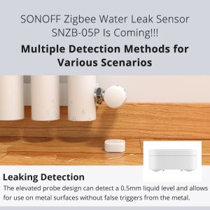 The SONOFF Zigbee Water Leak Sensor (SNZB-05P) is a reliable and smart solution for real-time water leak detection. Designed to prevent water damage, it utilizes the advanced Zigbee 3.0 protocol and offers multiple detection methods to suit various scenarios.