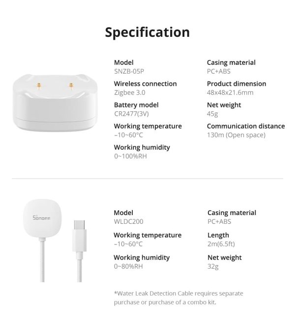 - Extended Detection Support: Compatible with a water leak detection cable (available separately or as part of a sensor kit) for flexible wide-range or focused narrow-area detection.